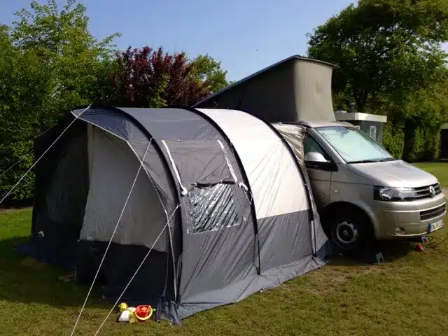 Using an awning or tent extension for a VW California offers several great advantages. It provides extra living space, perfect for dining, relaxing, or storing gear, making your camping experience more comfortable. The awning also offers protection from both sun and rain, allowing you to enjoy the outdoors regardless of the weather. With a quick and easy setup, it creates a cozy and sheltered area that enhances your campervan lifestyle, giving you more freedom and flexibility on your adventures.