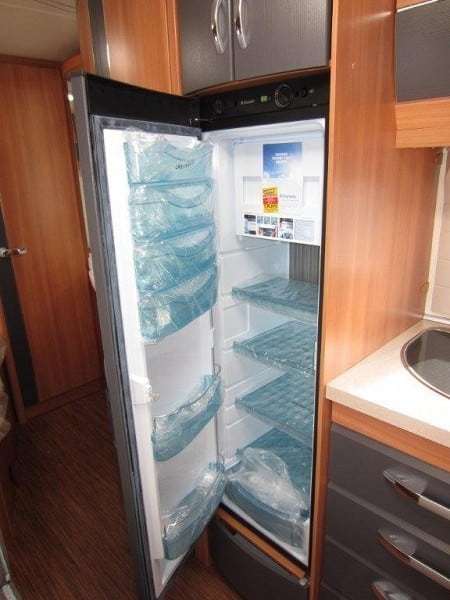 Stavern” has sleeping space for up to 6 people. This caravan can be used all year, as it has both   central heating and floor heating. The carriage is equipped with a large fridge, microwave and kitchen fan.