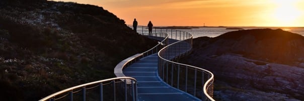 There are many rest areas and viewpoints along the Atlantic Road, like this one at Eldhusøya. This elevated hike makes a round trip around the small island, doable for everybody. The café is open during the summer season.